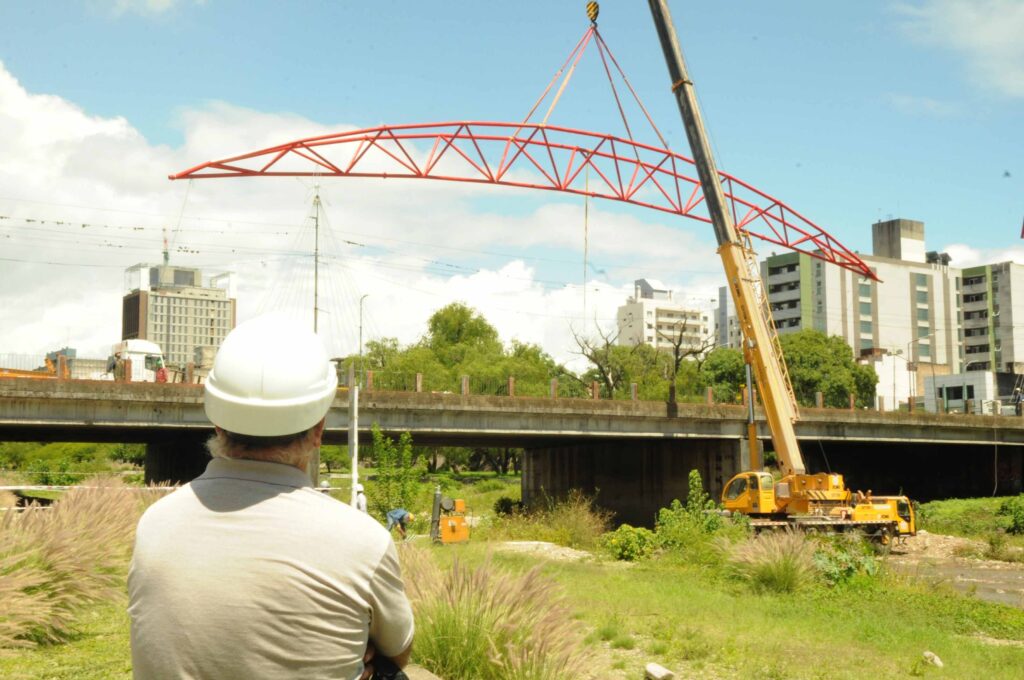 Tal como fue anunciado, se procedió al corte total de la circulación vehicular sobre Puente Gorriti con motivo del montaje de la segunda pasarela peatonal que unirá las márgenes del Río Xibi Xibi generando una mayor conectividad y funcionalidad del pulmón verde de nuestra ciudad. El intendente de San Salvador de Jujuy, Raúl “Chuli” Jorge, estuvo presente, supervisando personalmente las tareas de armado, traslado e instalación de la estructura.