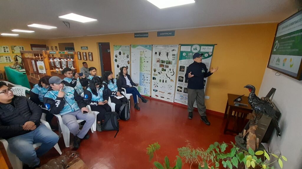 Seguidamente se realizó un recorrido por la sala de interpretación y la galería, abordando los criterios de diseño expositivo y comunicación ambiental. La visita continuó en el taller, donde el equipo técnico del Parque explicó los procesos de elaboración de cartelería, las tareas de mantenimiento de los senderos y las acciones vinculadas a la recolección y separación de residuos para su reciclaje.