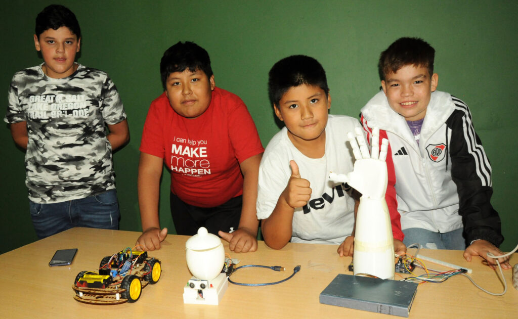 Seguidamente, Díaz, explicó que el objetivo del Club XXI es pensar y trabajar en la innovación utilizando la tecnología, inteligencia artificial y la electricidad, “esperamos que los chicos que nos acompañan aprendan de física matemática y otras herramientas para concretar estos proyectos y productos, un proyecto provincial que tuvimos fue desarrollar el control de riego de plantas a través de sensores”.