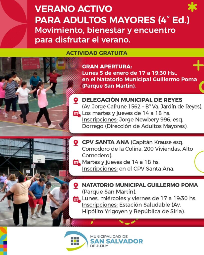 Desde el municipio se invita a la comunidad a sumarse a esta iniciativa que, año tras año, se consolida como un espacio de integración, cuidado y disfrute para adultos y adultos mayores, garantizando el acceso gratuito a actividades pensadas para mejorar la calidad de vida durante el verano.