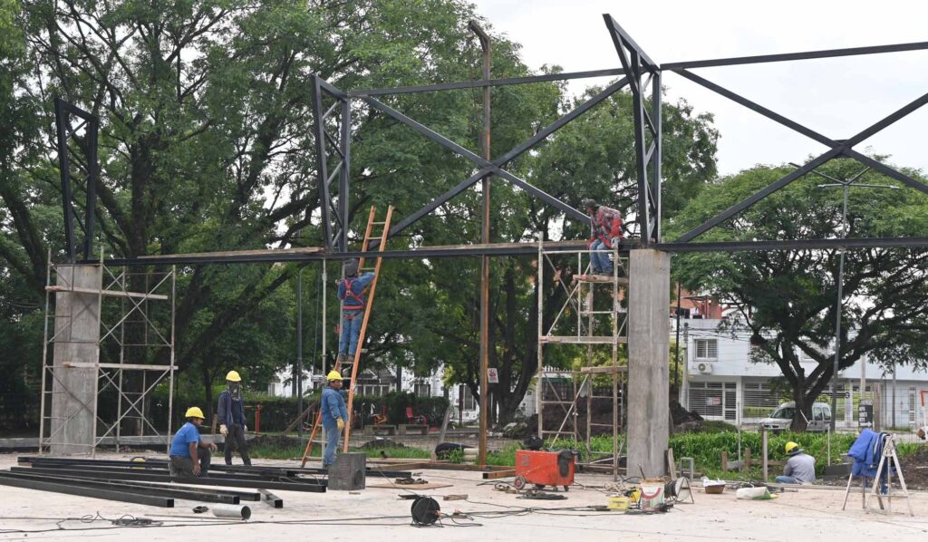 Por su parte, el director general de Planeamiento Urbano y Ordenamiento Territorial, Marcos Santos, detalló que la obra se encuentra en una etapa muy avanzada, “estamos en el ensamblaje y armado de toda la cubierta, que fue previamente preparada en un taller, lo que facilita el montaje y nos permite trabajar con plazos más cortos hasta concretar la estructura final”, indicó.