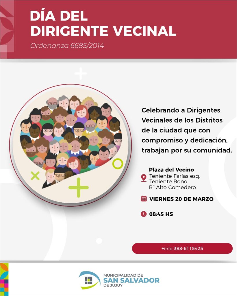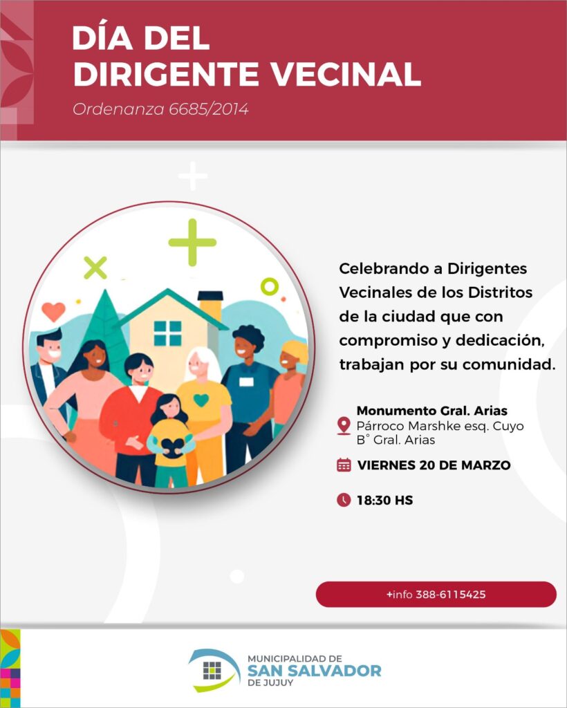En el marco de la conmemoración del Día del Dirigente Vecinal ,la Municipalidad de San Salvador de Jujuy llevará adelante una serie de actividades destinadas a reconocer y homenajear la labor de quienes trabajan día a día por el desarrollo de sus barrios.
