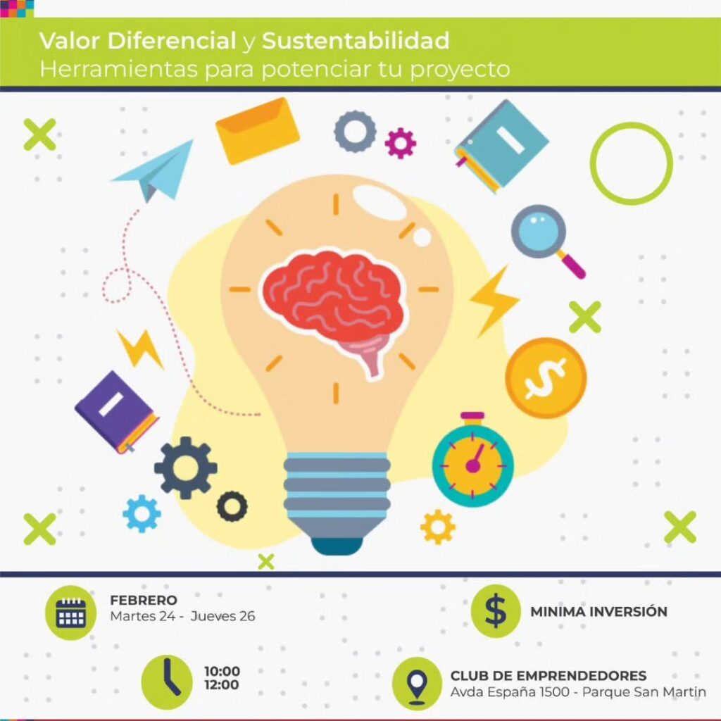 La cita será el próximo martes 24 y jueves 26 de febrero en el horario de 10 a 12 en las instalaciones del Club de Emprendedores, ubicado en Avenida España 1500 (Parque San Martin) El costo de actividad tiene una inversión de $5.000.