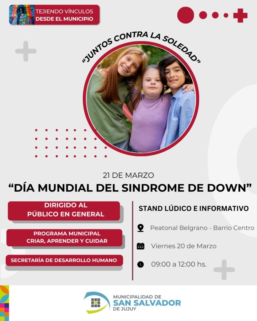 En el marco del Día Mundial del Síndrome de Down, que se conmemora cada 21 de marzo, la Municipalidad de San Salvador de Jujuy llevará adelante una actividad de sensibilización abierta a la comunidad, con el objetivo de promover la inclusión y generar conciencia sobre esta condición genética.
