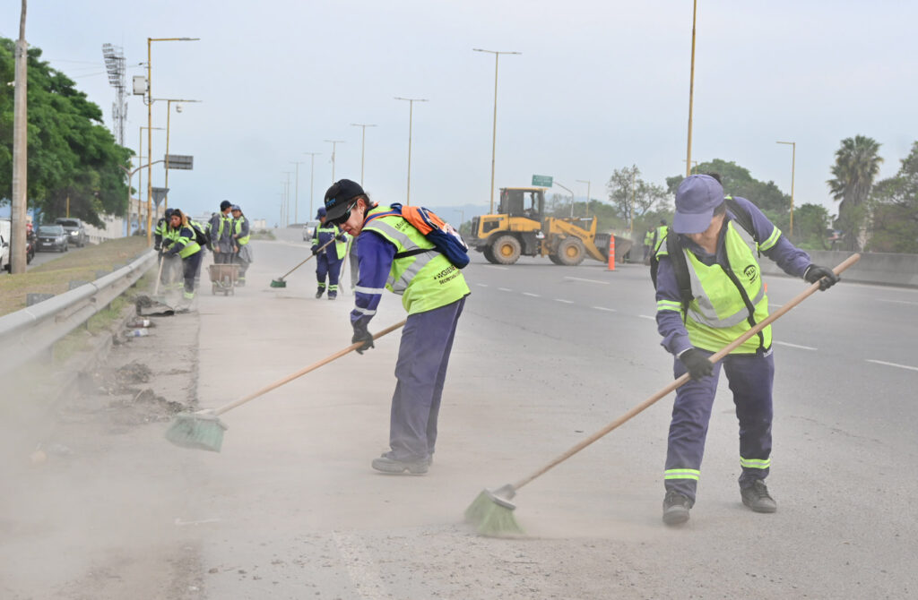 Tras dejar en óptimas condiciones el centro de la ciudad, los agentes continuaron con las acciones de limpieza, trasladándose a la avenida General Savio, uno de los principales accesos a la ciudad.