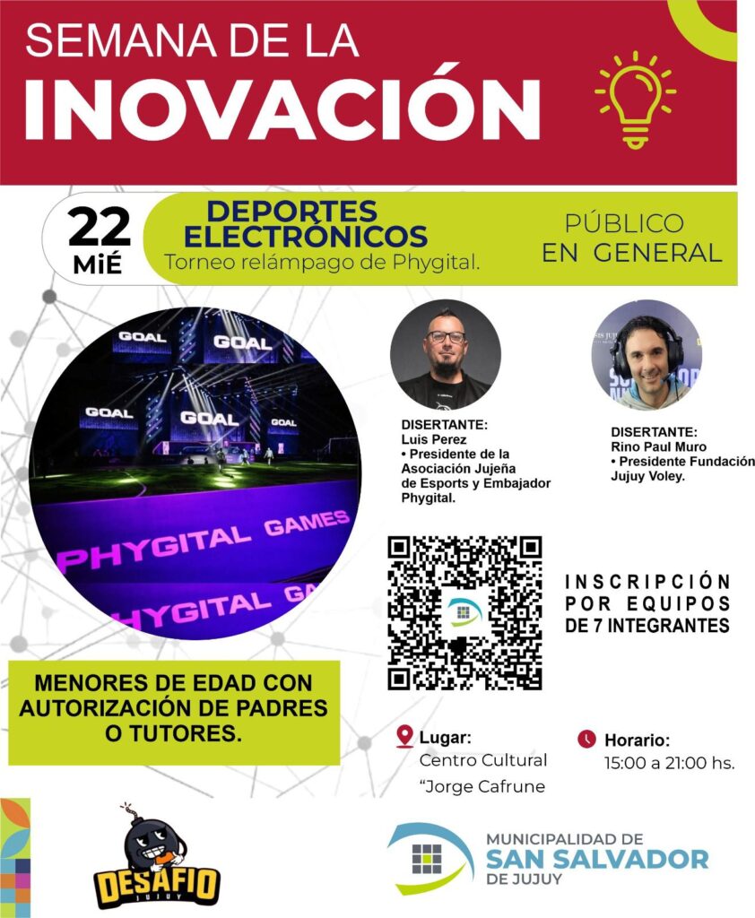 La Municipalidad de San Salvador de Jujuy invita a la comunidad a participar de “La Semana de la Innovación”, que se desarrollará del 20 al 24 de abril en los espacios Faro del Saber y Centro Cultural Jorge Cafrune, con una amplia agenda de actividades abiertas y gratuitas, cuya programación completa puede consultarse en el sitio web oficial del municipio: https://www.sansalvadordejujuy.gob.ar/innovacion/.