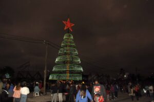 Se llevó a cabo la ceremonia de encendido del arbolito navideño ubicado en la avenida Forestal de Alto Comedero, acompañada por actividades culturales y musicales que reunieron a vecinos y