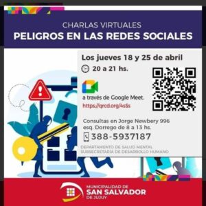 El Departamento de Salud Mental del municipio de San Salvador de Jujuy anunció la realización de dos charlas virtuales abiertas al público en general. La primera de ellas se llevará