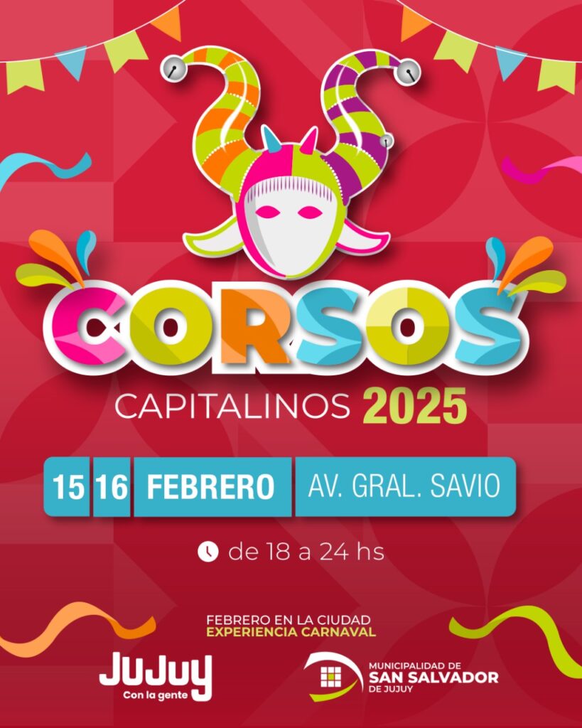 San Salvador de Jujuy se prepara para el regreso de los Corsos Municipales 2025 a la avenida Savio. La Municipalidad invita a vecinos y turistas a disfrutar de esta fiesta popular que celebrará su segundo fin de semana, específicamente el sábado 15 y domingo 16 de febrero desde las 18 horas.