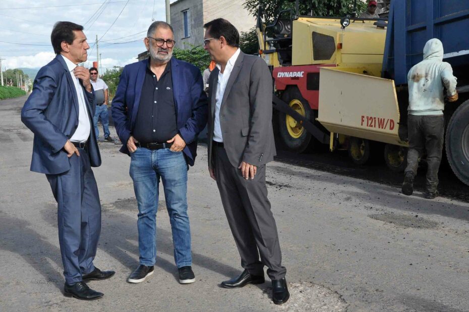 El intendente Jorge y el gobernador Sadir en la obra de pavimentación de avenida Pachamama