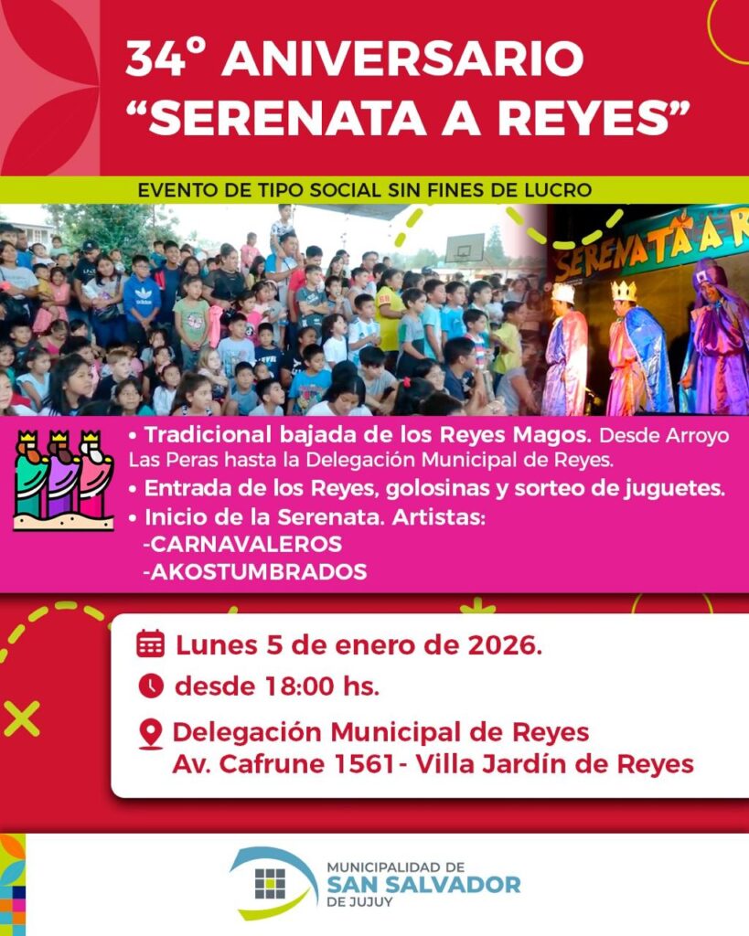 La comunidad de Villa Jardín de Reyes se prepara para vivir una nueva edición de la tradicional “Serenata a Reyes”, que este año celebra su 34° aniversario, consolidándose como uno de los eventos culturales y sociales más esperados de la zona.